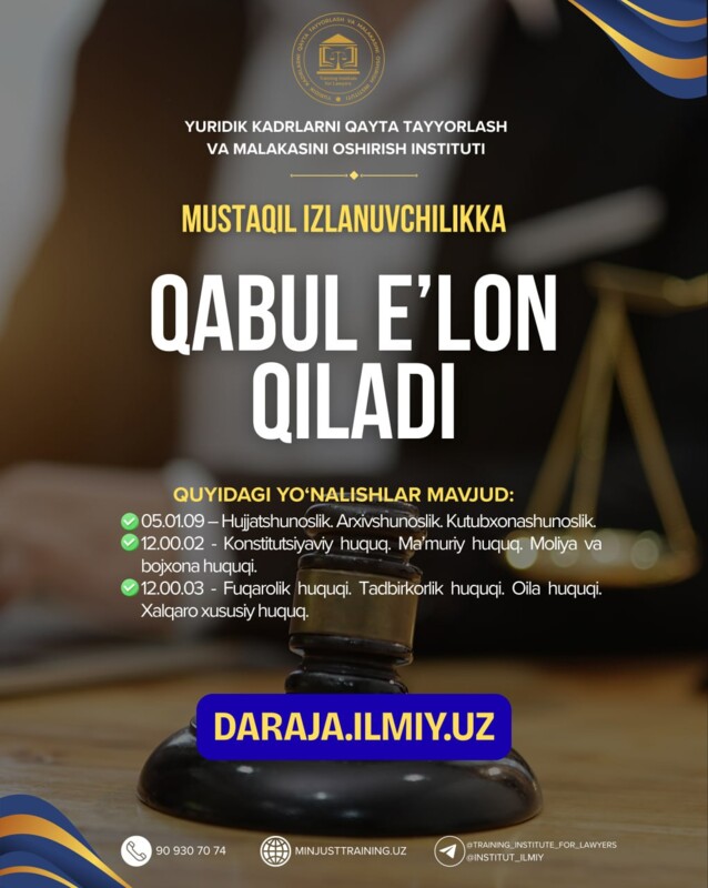 Юридик кадрларни қайта тайёрлаш ва малакасини ошириш институти ҳақида маълумот