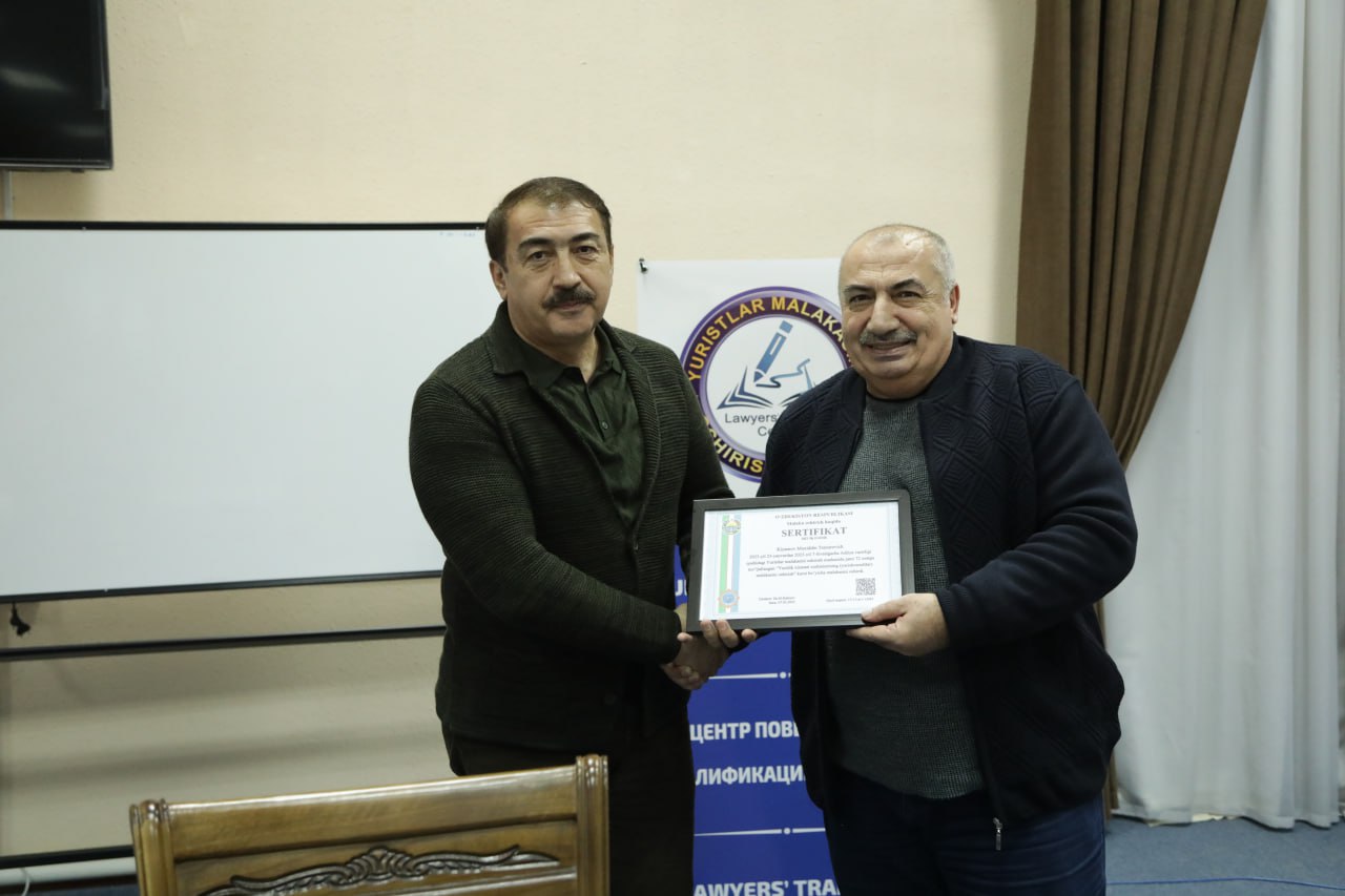 Yuristlar malakasini oshirish markazi tomonidan  "AGROBANK" aksiyadorlik-tijorat banki yuridik xizmati rahbar va xodimlaridan iborat navbatdagi kurs bitiruvchilariga SERTIFIKATLAR topshirildi.