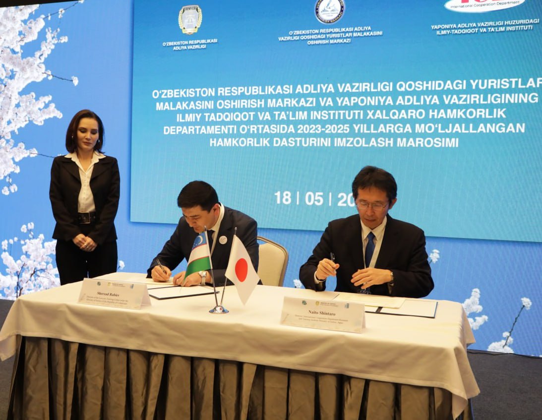 “TOSHKENT HUQUQ BAHORI” III xalqaro yuridik forumi doirasida Yuristlar malakasini oshirish markazi va  Yaponiya Adliya vazirligining ilmiy-tadqiqot va taʼlim instituti oʻrtasida “Hamkorlik dasturi”ni imzolash marosimi  boʻlib oʻtdi.