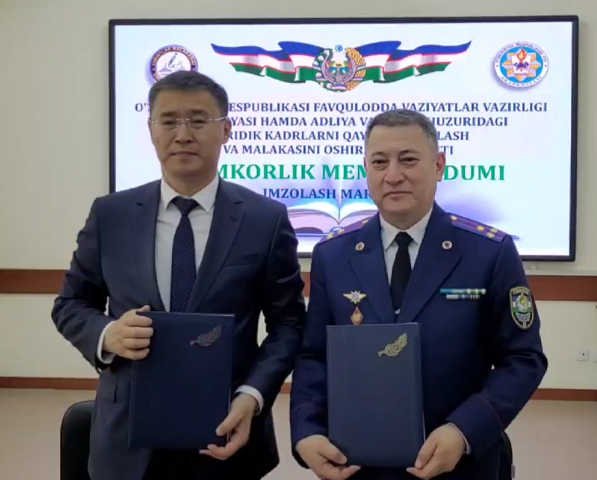 O‘zbekiston Respublikasi Favqulodda vaziyatlar vazirligi Akademiyasi va Yuridik kadrlarni qayta tayyorlash va malakasini oshirish instituti o‘rtasida ta’lim hamda ilmiy sohalardagi strategik hamkorlikni kuchaytirish maqsadida memorandum imzolandi.