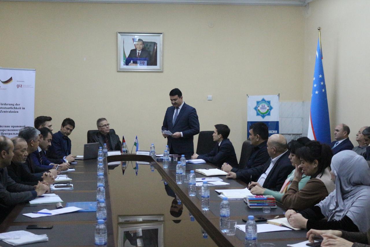 Марказ директорининг ўқув-услубий ва илмий ишлар бўйича биринчи ўринбосари А.Отажонов ўзининг кириш сўзида GIZ ташкилоти билан Марказнинг келгусидаги режалари ва  биргаликда амалга ошириладиган ишлар тўғрисида гапириб, халқаро экспертни қутлади ҳамда унинг “Суд қарори қабул қилинишида судья ва адвокат ўртасидаги ҳамкорликнинг хусусиятлари” мавзусидаги маърузаси айнан соҳа мутахассислари учун мўлжаллангани ва унинг аҳамияти тўғрисида ўзининг фикрларини билдирди.