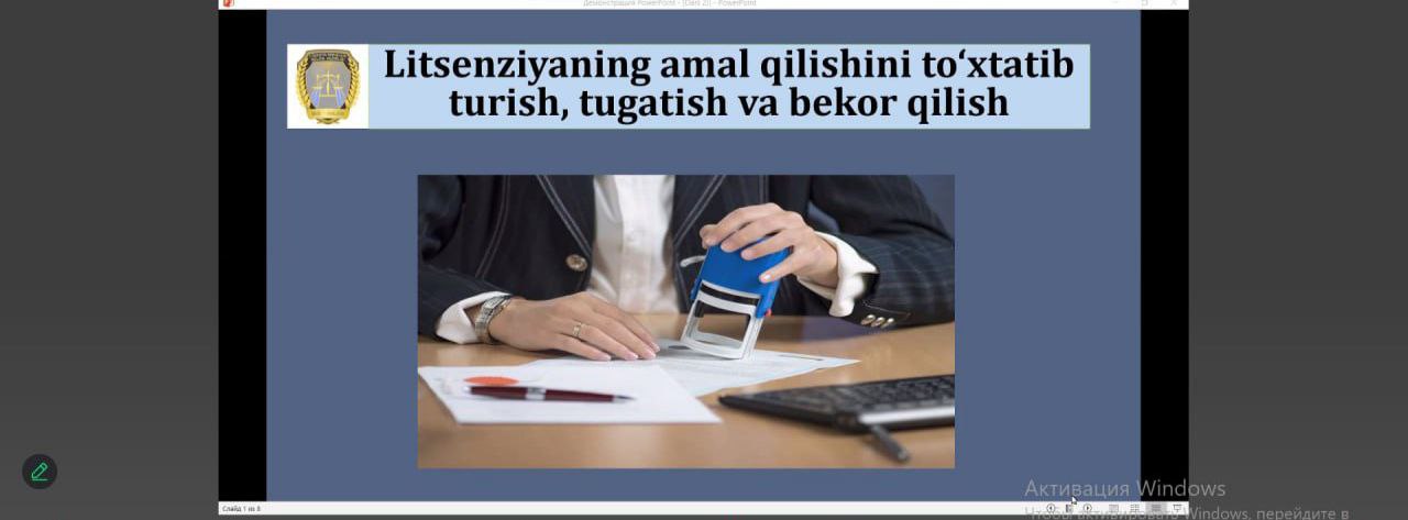 "Litsenziyani to‘xtatish, tugatish va bekor qilish asoslari" mavzusida Institutimizda malaka oshirayotgan notariuslarga Oʻzbekiston Respublikasi Adliya vazirligi mas’ul xodimi R.Abdigapparov tomonidan amaliyot mashg‘uloti o‘tkazildi.
