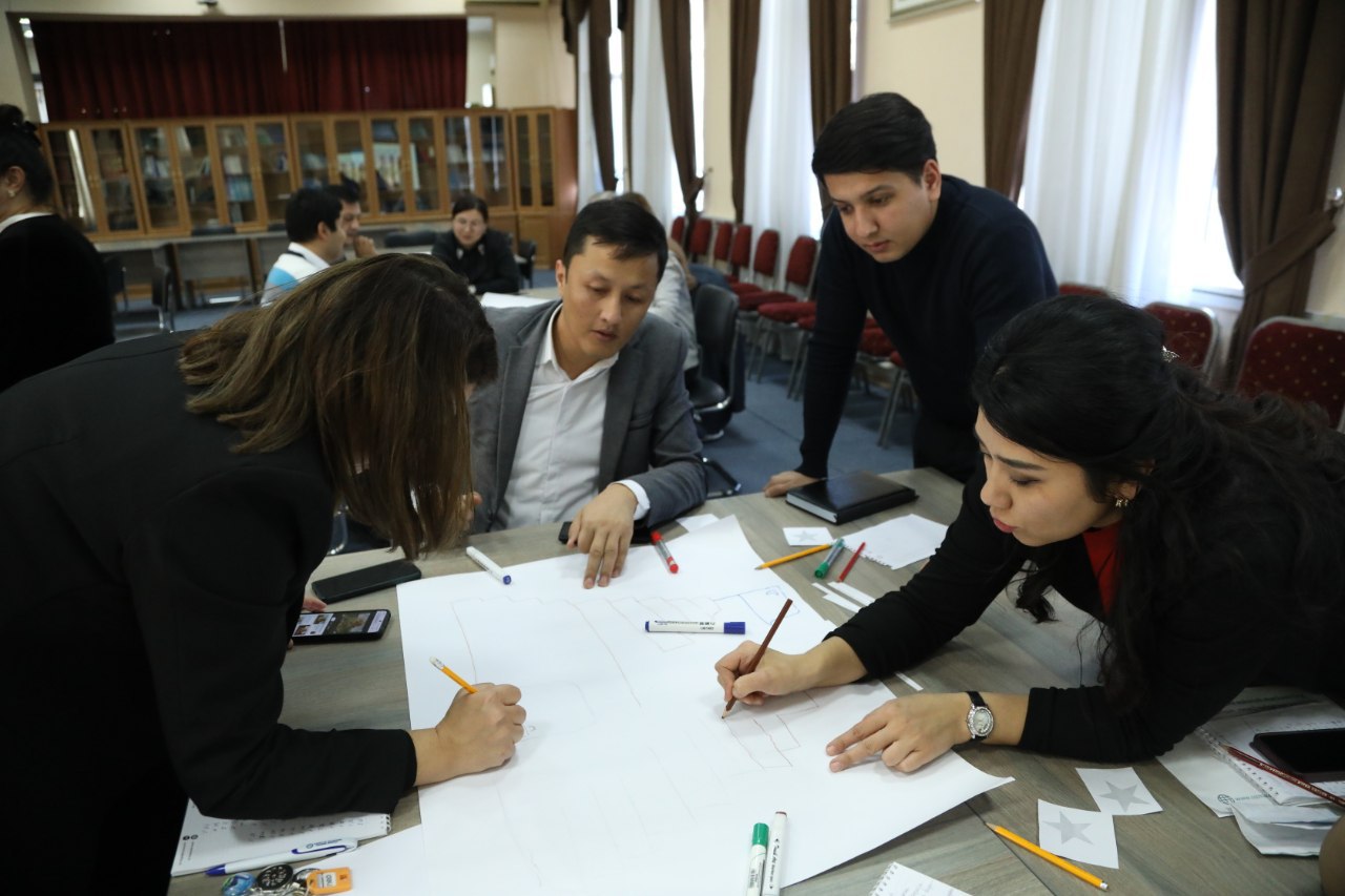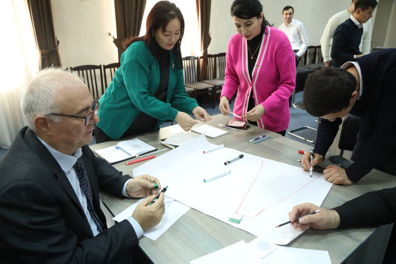 Trening ishtirokchilar o‘rtasida korporativ madaniyat, ta’lim jarayoni va metodologiya bo‘yicha so‘rovnomalar o‘tkazildi.