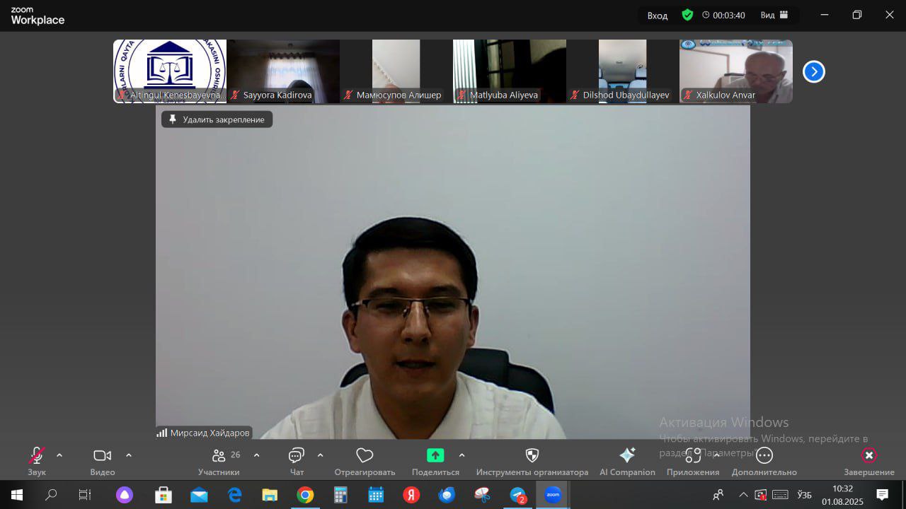 Institutimizda malaka oshirayotgan advokatlarga Milliy dastur yuzasidan amalga oshirilgan ishlar xususida hamda giyohvandlik va narkojinoyatlarni oldini olish boʻyicha Milliy markaz mas'ul xodimi M.Xaydarov tomonidan tahliliy ma'lumot berildi.