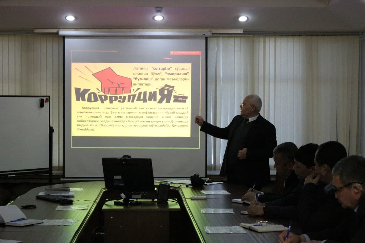 Yuristlar malakasini oshirish markazi tomonidan “Temir yoʻllarda yuk va yoʻlovchilar tashish xavfsizligini nazorat qilish inspeksiyasi” rahbar va xodimlarining korrupsiyaga qarshi kurash borasidagi bilim va koʻnikmalarini shakllantirish maqsadida  sayyor malaka oshirish kurslari tashkillashtirildi.