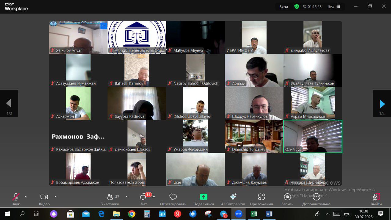 Respublikada faoliyat yurituvchi advokatlar uchun amaliy mashg 'ulot tashkil etildi.