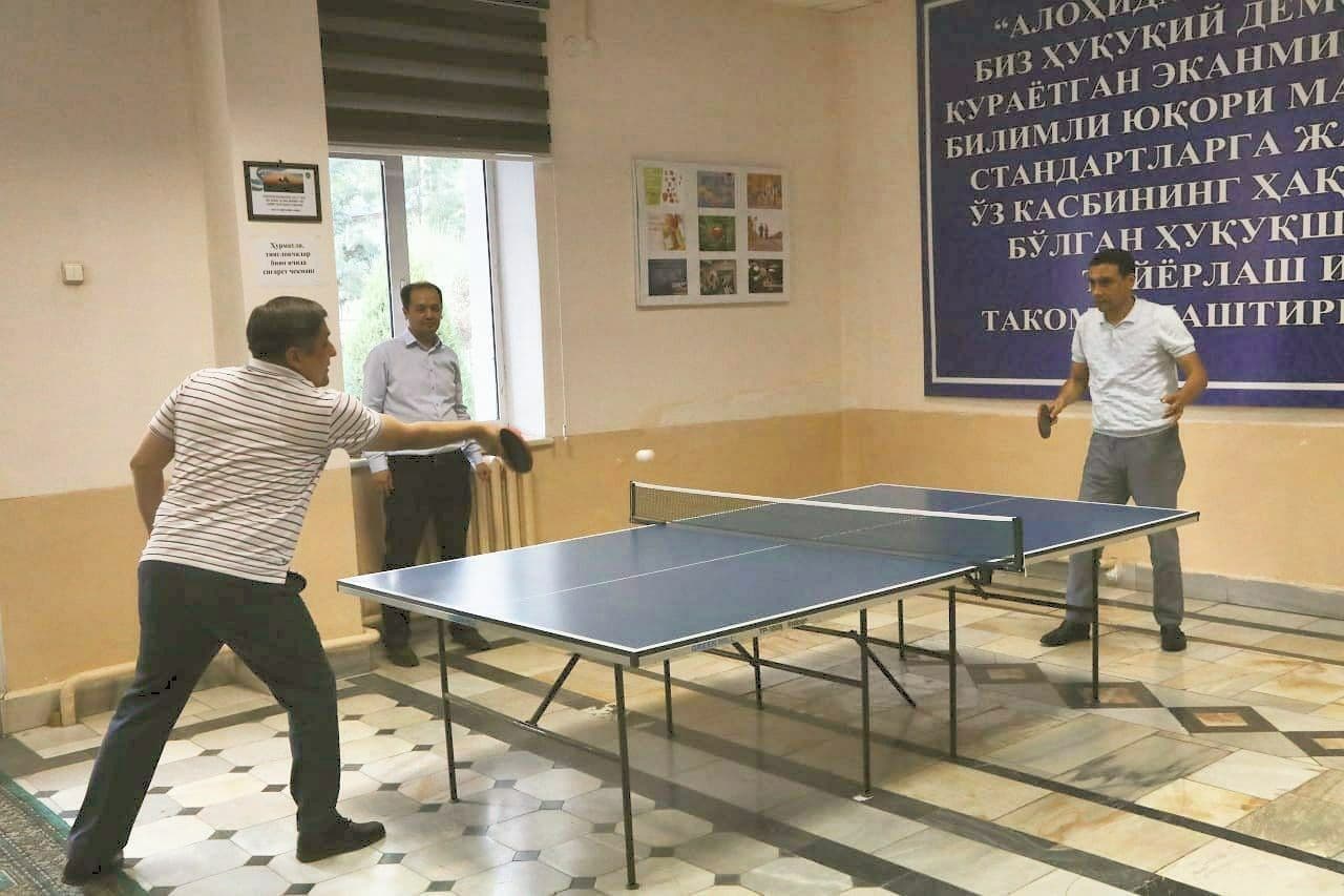 2021  йилнинг 1 июнь куни  Ўзбекистон Республикаси Адлия вазирлиги қошидаги Юристлар малакасини ошириш маркази профессор-ўқитувчилари ва ходимлари иштирокида спортнинг стол тенниси бўйича Марказ директори соврини учун ўтказилаётган спорт мусобақасига старт берилди. Ушбу мусобақани юқори савияда ўтказиш, бу спорт турини Марказ профессор-ўқитувчилари ва ходимлари ўртасида янада оммалаштириш ҳамда стол тенниси билан шуғулланиш учун яратилаётган шарт-шароитлар ҳақида Марказ директори вазифасини бажарувчи А.Отажонов қуйидагиларни таъкидлаб ўтди: