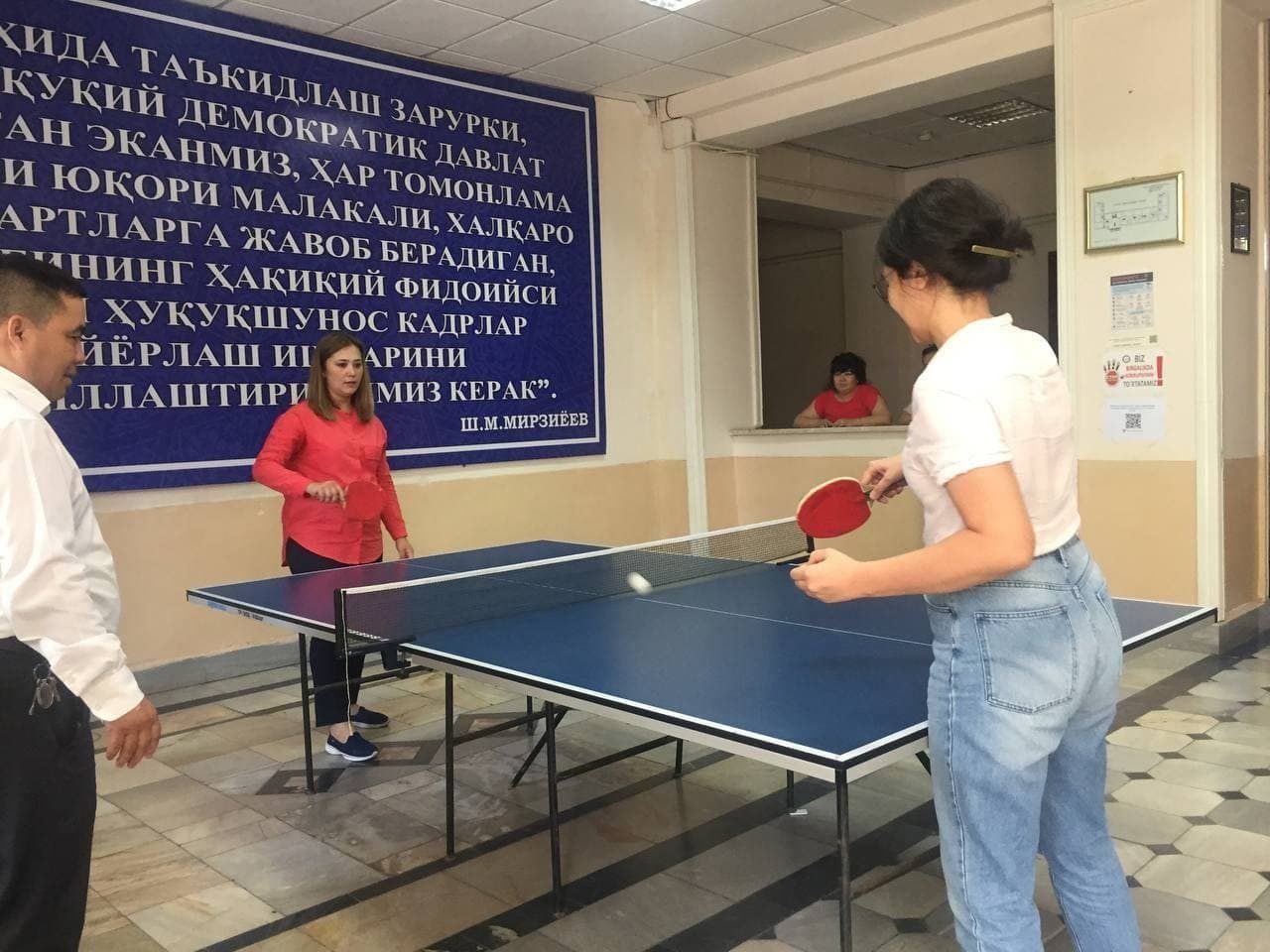 - Сўнгги йилларда стол тенниси Марказ профессор-ўқитувчилари ва ходимларининг севимли спорт турига айланди. Шу муносабат билан биз ушбу спорт турини ходимлар ўртасида янада оммалаштириш ишларини босқичма-босқич олиб бордик. Ходимлар орасида соғлом турмуш тарзини тарғиб этиш мақсадида Марказ директори совринини тадбиқ этдик.