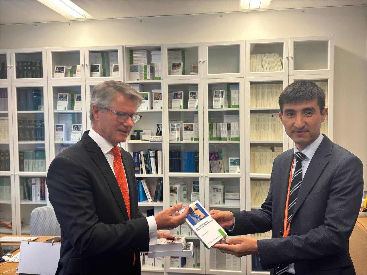 Institutning Ilmiy ishlar va xalqaro hamkorlik boʻyicha oʻrinbosari Firuz Maxmudov Gaaga akademiyasi Bosh kotibi, professor Jean-Marc Thouvenin bilan uchrashdi.