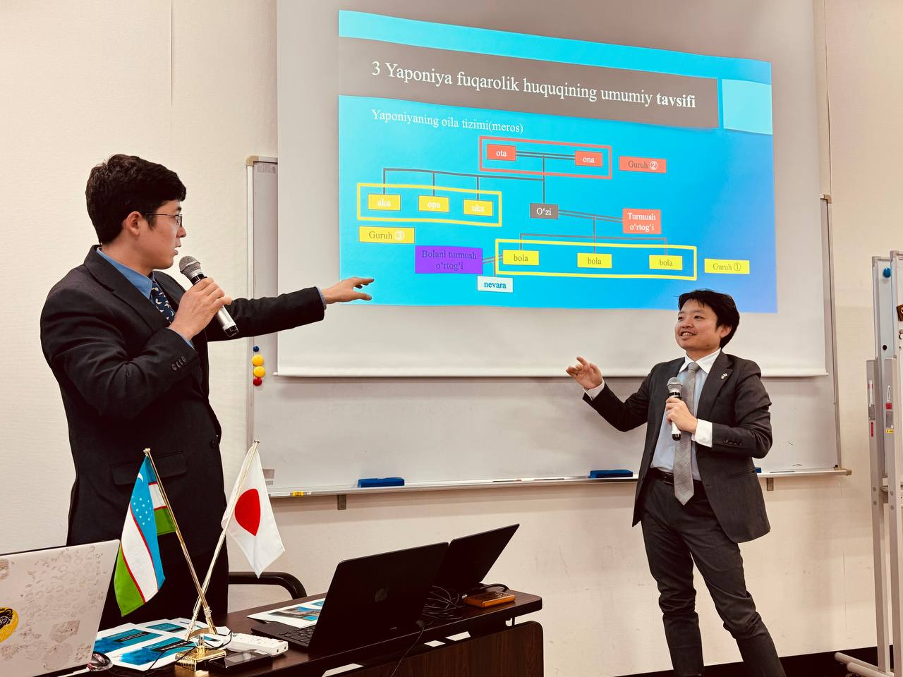 Malaka oshirish va amaliy stajirovka doirasida tashkil etilgan dastur davomida Yaponiya huquq tizimi, Adliya vazirligi faoliyati, fuqarolik, jinoyat va sud qonunchiligi bilan tanishildi.