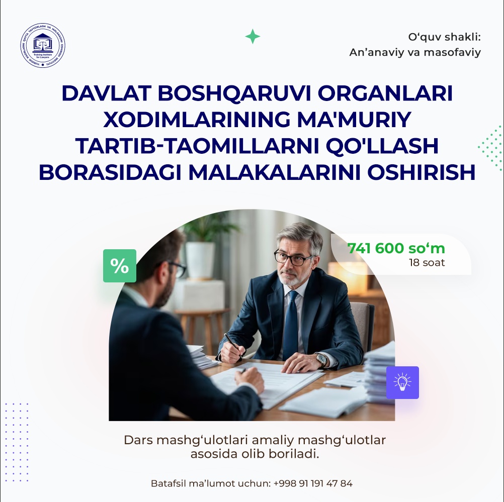 Yuridik mutaxassislik bo‘yicha qayta tayyorlash kurslari